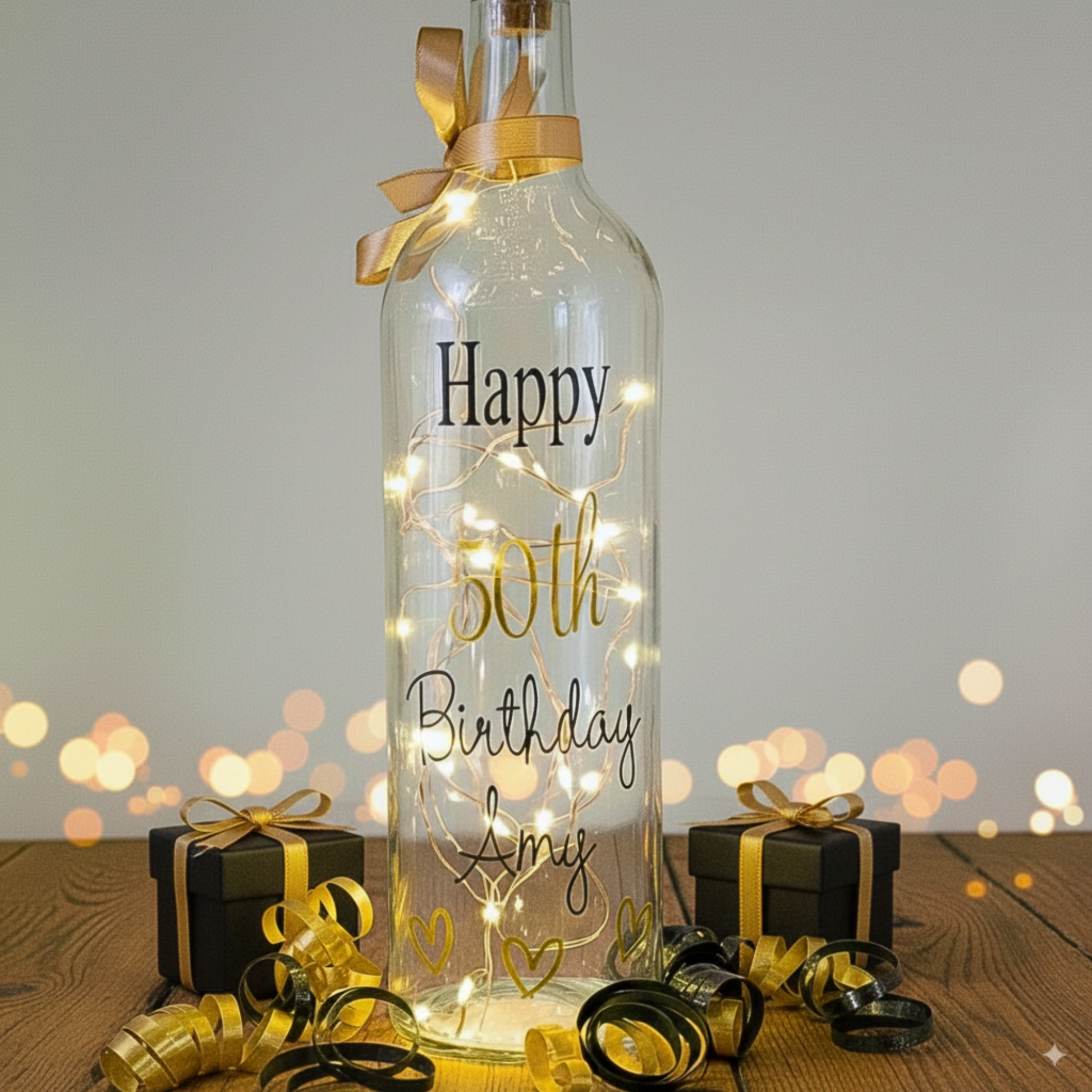 Custom Milestone Age LED Light Up Bottle | Personalised 50th Birthday Gift